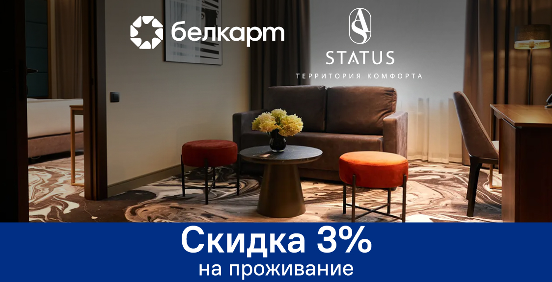 АктивнаСкидка 3% на проживание в отеле «STATUS» (г.Брест)С 03.02.2026 г. по 29.04.2026 г. -